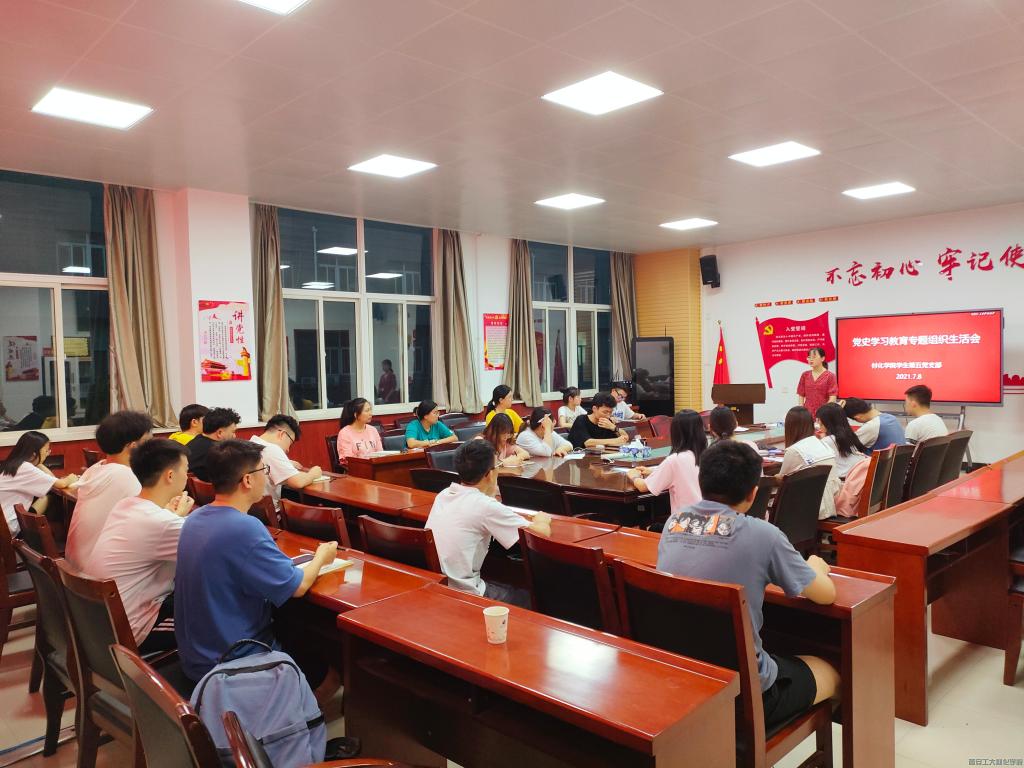 学生第五党支部于工3-410会议室召开党史学习教育专题组织生活会,支部书记乔娜和全体学生党员参加,会议由支部副书记吕雪敏主持。