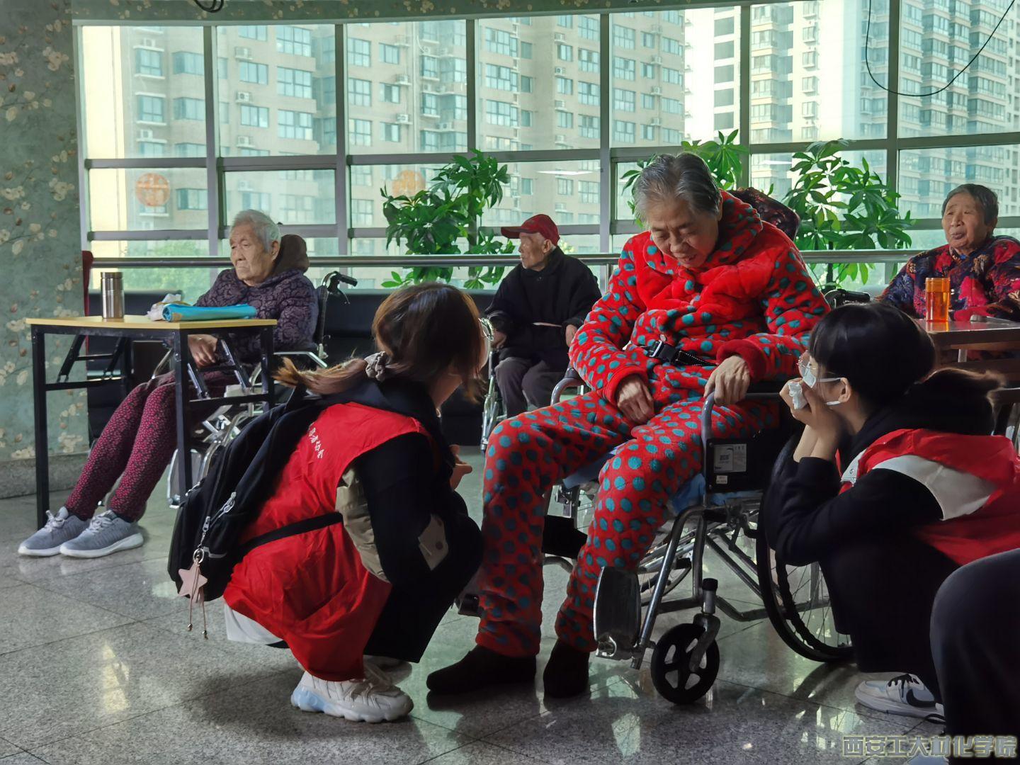 活动伊始,早上8点从校西门集合整队前往春天老年护理院,经过一个半小时的路程后抵达目的地。在养老院,志愿者们听从与院长安排相关工作分成2个小组,同时志愿者们将提前给予老人准备好的慰问品交予院长,并开展志愿服务活动。大家都分散开与各位老人进行亲切的交流,将关怀无微不至的传递给老人。老人家脸上洋溢着慈祥的笑容,使志愿者们感受到志愿服务的乐趣。因为时值建党百年,大家还与院内老党员们交流了党史故事。老人家丰富的知识使大家受益匪浅,也更加深刻的了解了党史,对老人家愈发崇敬。之后,大家一起表演了诗朗诵《沁园春·雪》以及歌曲《我和我的祖国》,老人们都很欣慰。最后,老人们与大家一同合影留念。至此,此次本次活动圆满结束。