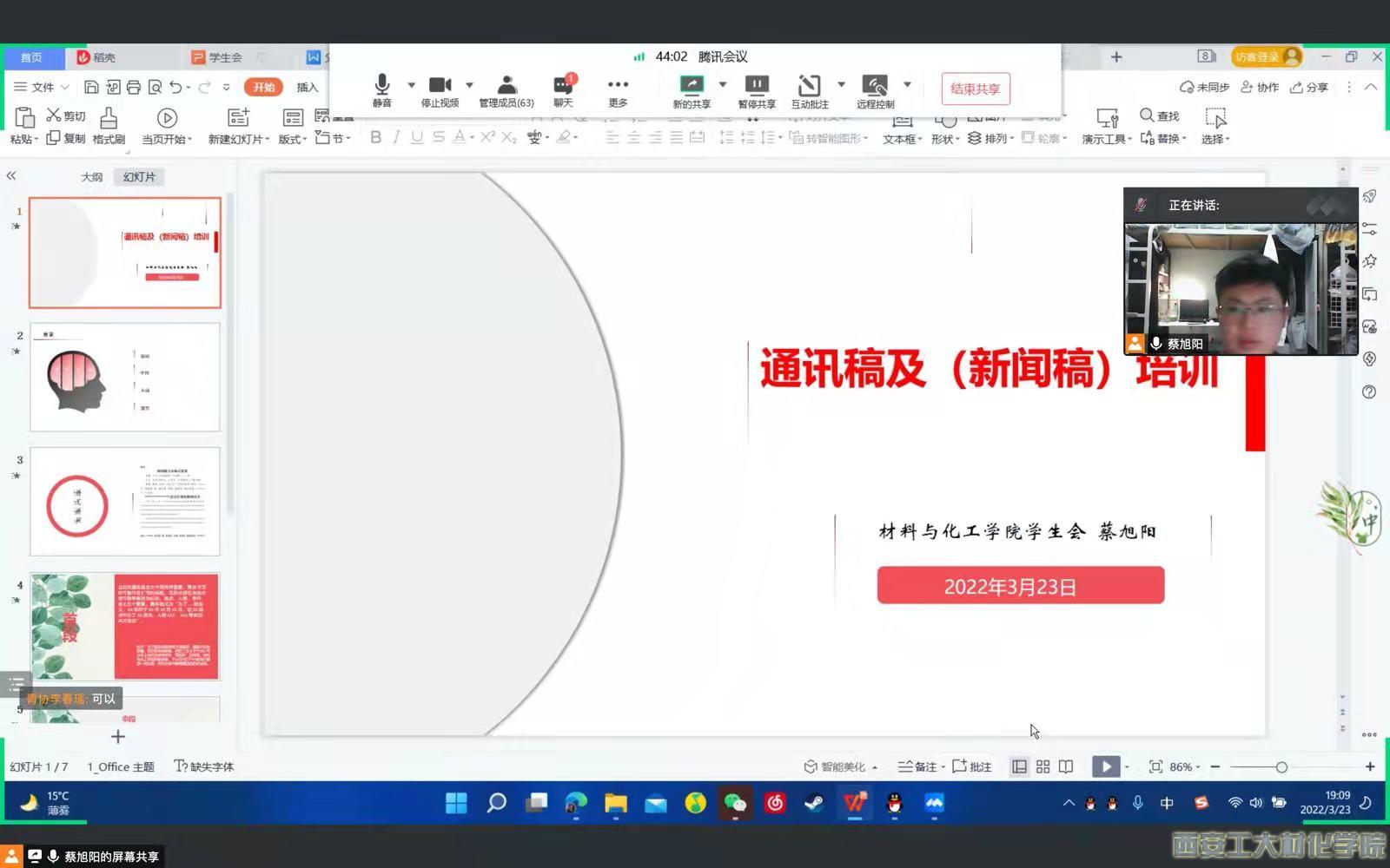 学生会线上召开关于团学办公技能-通讯稿撰写培训会议,学生会全体学生干部参会。