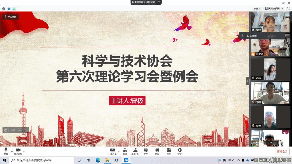 科学技术协会于2022年4月27日晚九时在腾讯会议召开了“华夏之光,时代之魂”主题教育理论学习会。本次会议由学生干部曾极主持召开,科协全体成员参加本次会议。