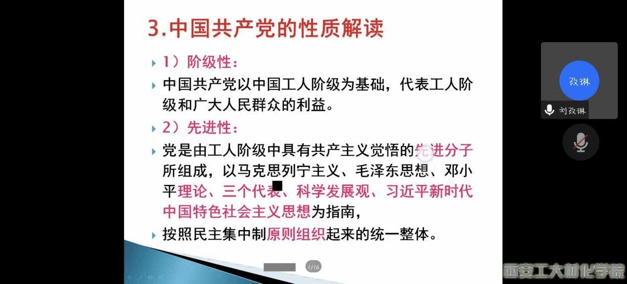 分党校于2022年11月8日开展以“中国共产党的性质”为主题的理论培训。本次培训由西安工业大学新生院院长刘改琳老师主讲,培训班全体成员参加。