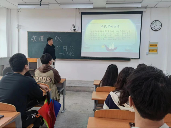 21030102支部于教三412举办以“但愿人长久,千里共婵娟”为主题的中秋知识竞答。整个活动气氛活跃,节目精彩,本支部全体同学参加此次活动。