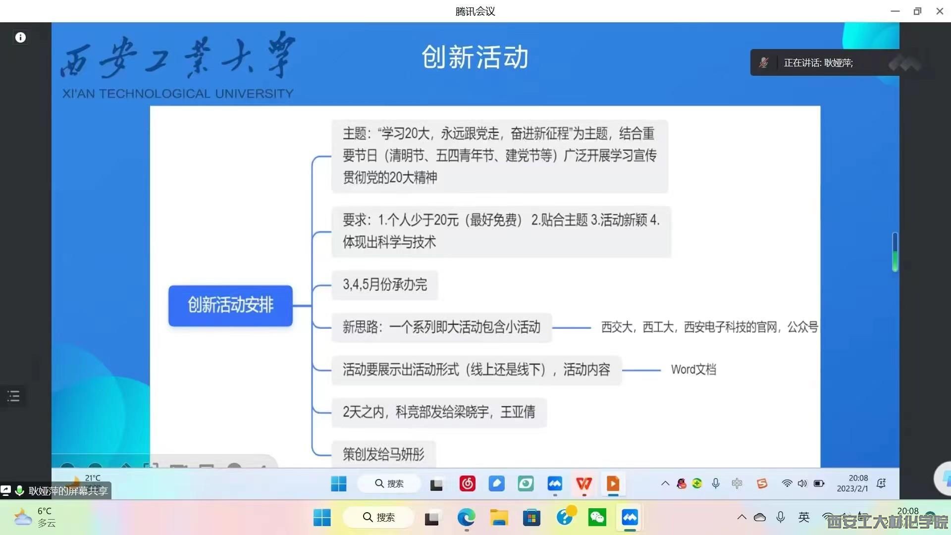 本次会议的主持人是学生干部耿娅萍。会议伊使,耿娅萍向全体参会人员表达了诚挚的新年祝福,其他成员同时也向彼此送出了新年祝福。接下来,耿娅萍开始部署新学期工作,她指出新学习的活动策划要围绕“学习二十大,永远跟党走,奋进新征程”这一主题,同时结合科学技术协会的组织特色——科技与创新。结合主题和要求,成员纷纷提出了自己对新学期活动策划的意见和建议,明确了活动的形式和内容,为新学期活动的顺利开展打下基础。