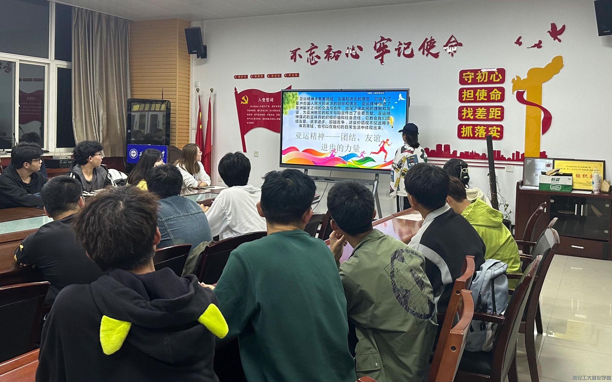 会议伊始,学生干部王思远通过一段精彩的亚运会集锦向大家详细的展示出团结、友谊和进步的亚运精神。亚运精神,是一种激励人心的力量,是体育的积极价值和社会责任。会议中全体成员通过对亚运会中国家所取得荣誉数据以及青年人再续前辈们的风采,接过强大的运动精神接力棒镜头,让在场的学生感受到什么是青年担当、运动精神、国家荣耀。此外,学生干部张桐对亚运会中出现的青年大学生志愿服务身影与参会学生进行交流探讨,并倡议全体学生会成员在今后要明确自身的责任和使命,坚持“团结、友爱、互助、进步”的志愿服务精神,为138开奖网