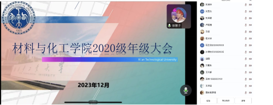 2020级于12月20日召开线上年级大会,会议主要围绕筑牢安全防线、个人卫生健康、树立正确就业目标等方面展开,会议由辅导员徐慧子主持。