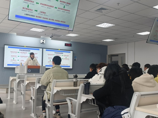 此外,刘老师还分享了自己的就业经验和就业心得。她用自己的亲身经历告诉同学们,要树立正确的就业观念,虚心学习,积极参加各种实习和社会实践,提升自己的综合素质,不断完善自己,才能在激烈的就业竞争中脱颖而出。