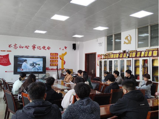党建工作室开展学习全国两会精神主题党日活动,副书记职希玉同学主持,支部党员参加。