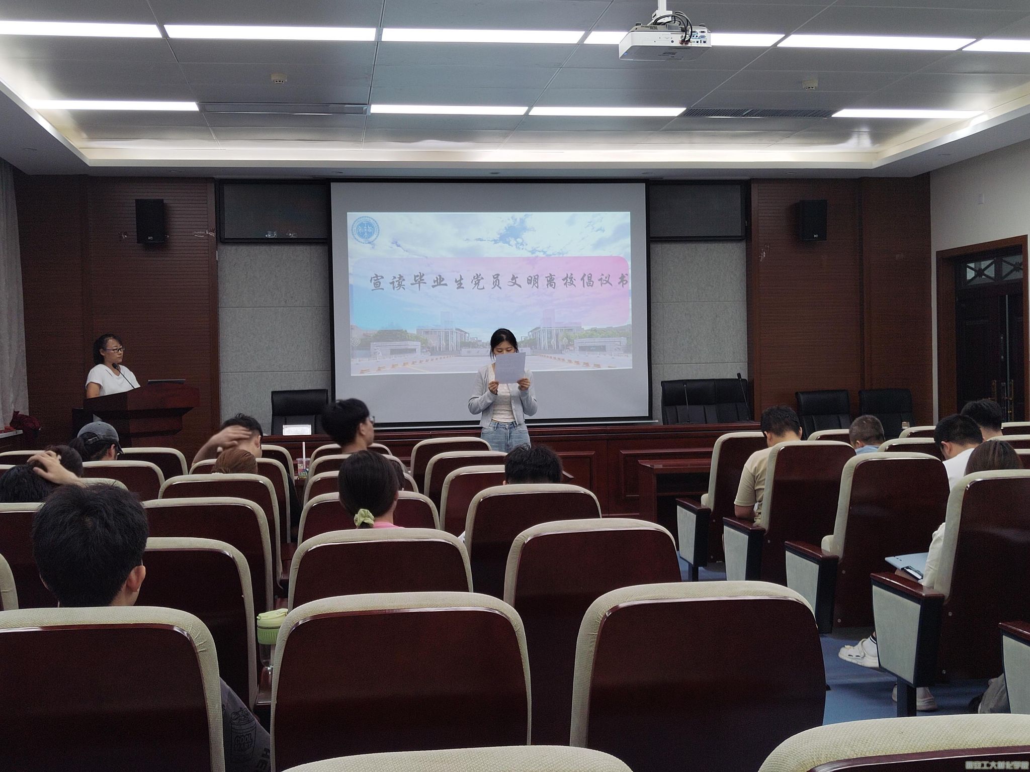 活动上,支部书记强调学生党员要学纪、知纪、明纪、守纪,临近毕业,要求毕业生党员以身作则,时刻警醒自己,加强自我约束,担当好纪律建设的执行者和守护者,始终发挥榜样模范作用。接着,支部副书记职希玉宣读《毕业生党员文明离校倡议书》,倡议毕业生党员在离校阶段的各项工作中自觉发挥好先锋作用,毕业生党员纷纷分享了个人离校的想法和建议,并在文明离校倡议书上签字。随后,支部书记对毕业生党员“站好最后一班岗”提出了具体要求,希望同学们牢记党员身份,坚定不移听党话、跟党走,脚踏实地走好人生路,为母校增光添彩。