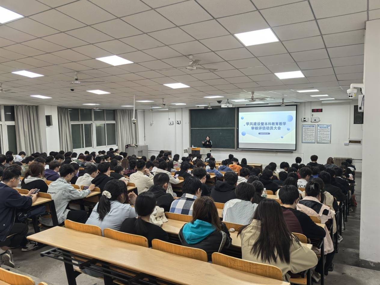 2023级于教1-201教室召开学风建设暨本科教育教学审核评估学生动员大会,大会由2023级学生辅导员乔娜主持。