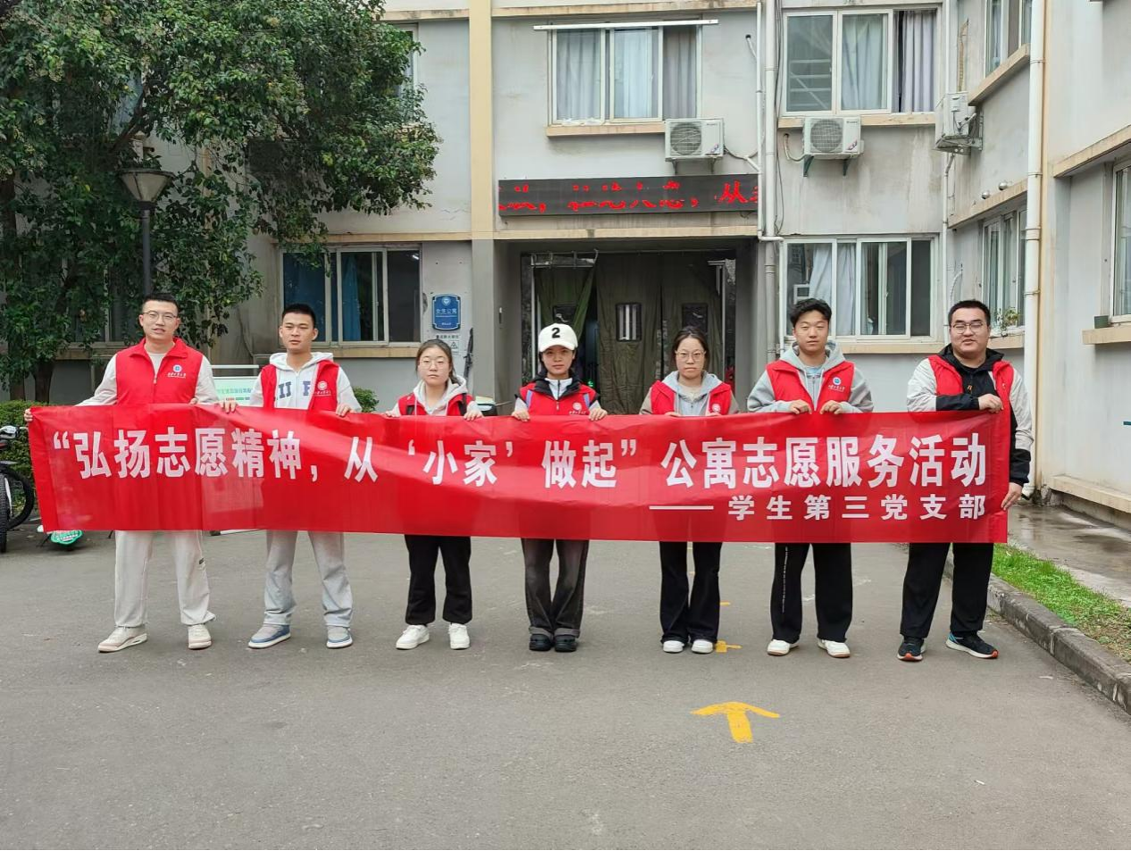学生第三党支部于校内开展“弘扬志愿精神,从‘小家’做起”志愿活动,支部全体党员参加此次志愿服务活动。