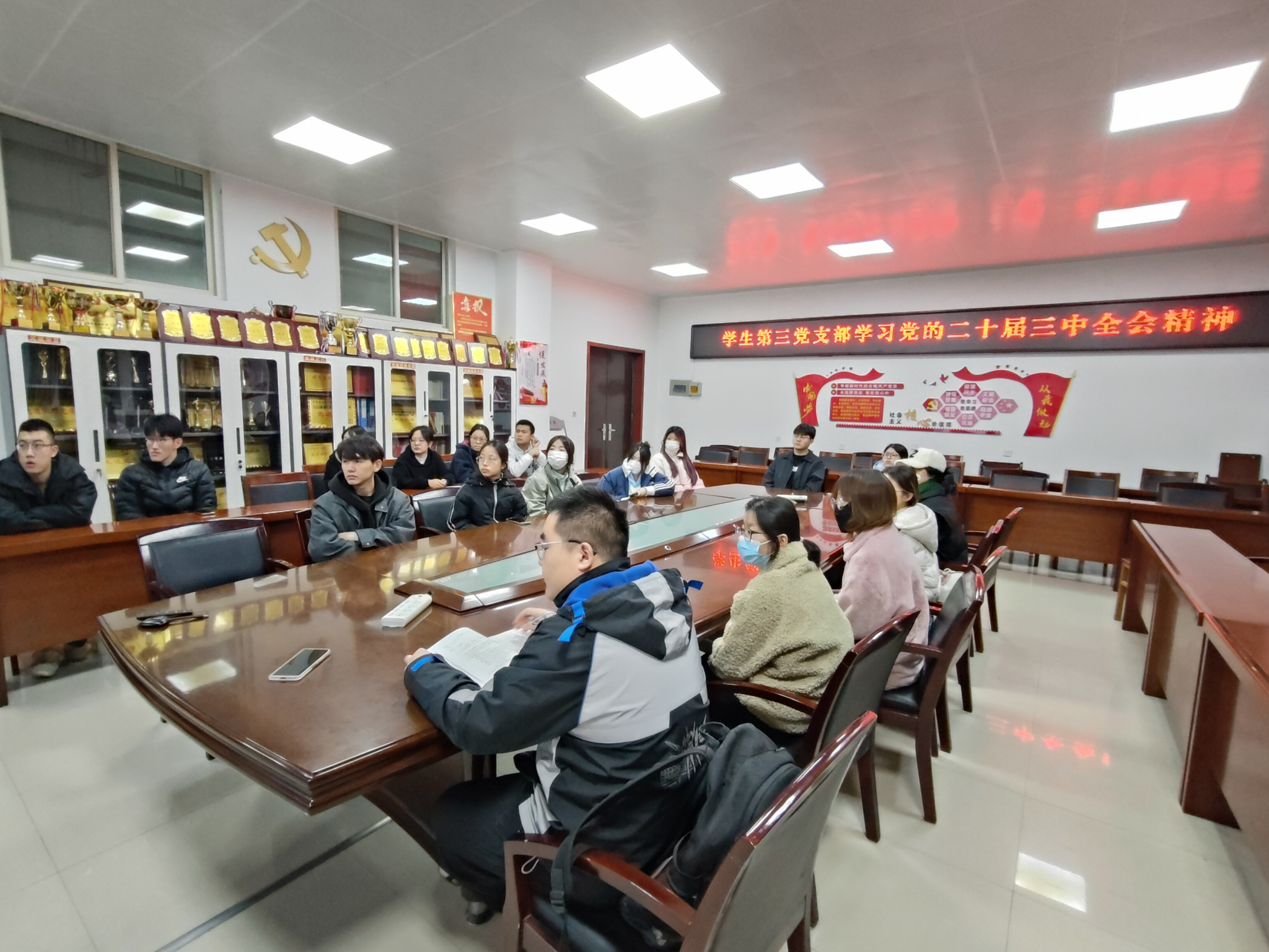 学生第三党支部于工3-410开展党的二十届三中全会精神解读学习会。此次学习旨在深化全体党员对全会精神的认识和理解,激发党员们在实际工作中贯彻落实全会精神的热情和动力,支部全体党员参加。会议由秦正洋主持。