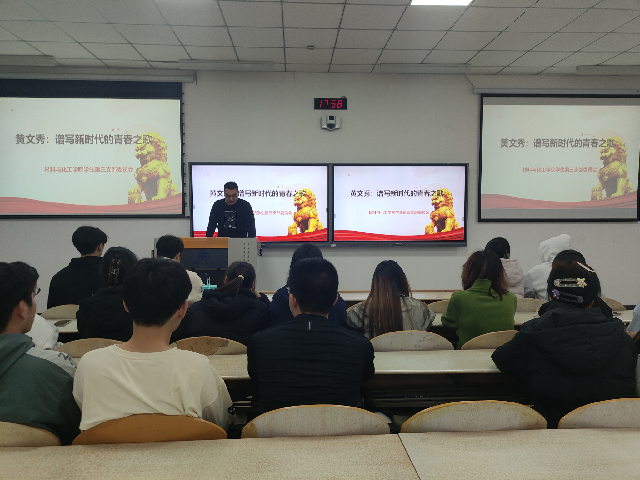 学生第三党支部于教2-103开展“学习榜样黄文秀,谱写时代青春之歌”主题党日活动,支部全体党员参加此次活动。会议由支部副书记秦正洋主持。
