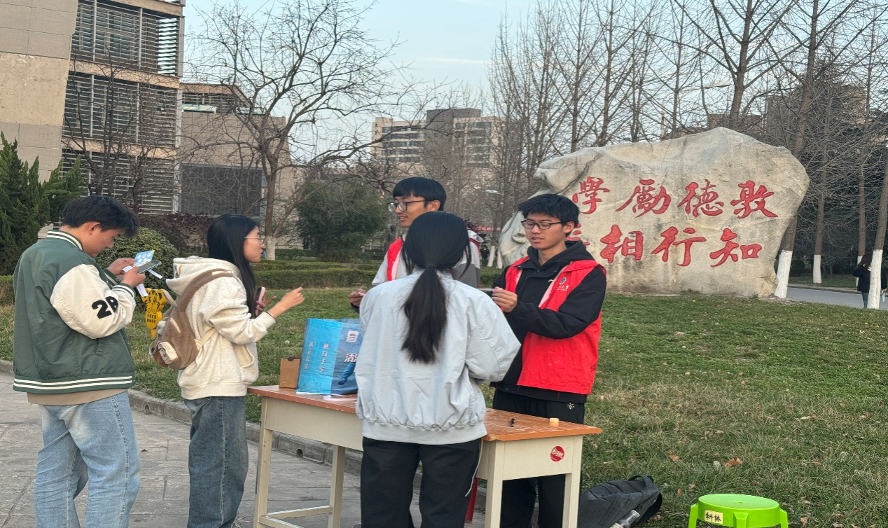 在工三楼下,一场别开生面的“化学元素对联破译”活动火热开场。由化学元素符号精心拼凑而成的对联,瞬间成为理科生们的“烧脑战场”。大家绞尽脑汁,凭借扎实的化学知识储备,在这场独特的挑战中各显神通。在这个环节里,同学们不仅淋漓尽致地展现出对化学知识的娴熟掌握,更别出心裁地运用创意对联,向学校送上了真挚的祝福。一副副对联构思巧妙、妙趣横生,字里行间满是智慧的火花;每一段解释情真意切,无不饱含着对学校的热爱与深深敬意。这场“材化送祝福”游戏,让欢声笑语回荡在校园,也让同学们在轻松欢乐的氛围里重温校史,沉浸式感受学校的精神传承,让那份独属于校园的温暖与力量,在每个人心间悄然扎根、延续。