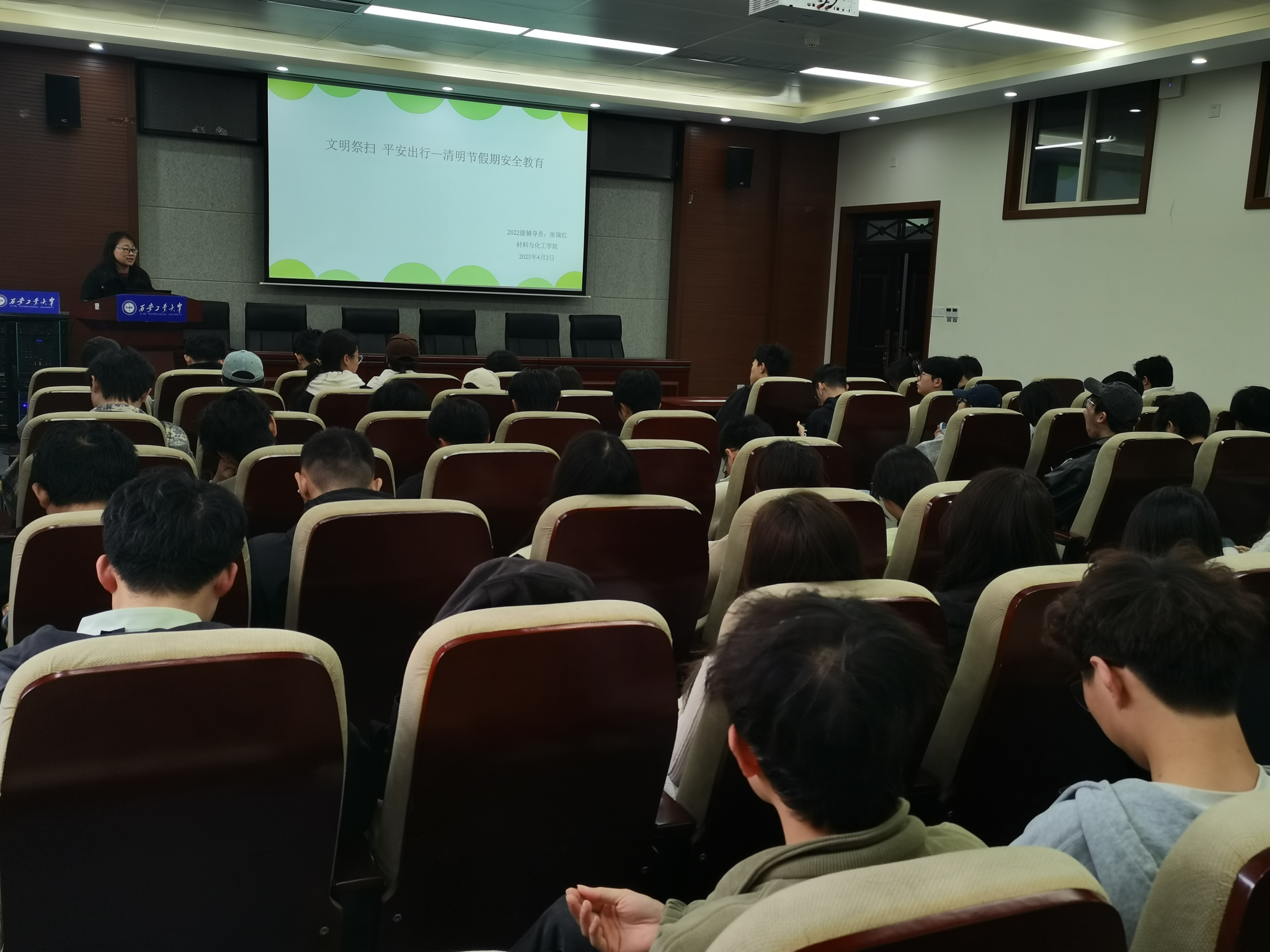 在工4-204召开2022级清明节假期安全教育会。本次会议由辅导员张瑞红主持,2022级100余名学生参会。