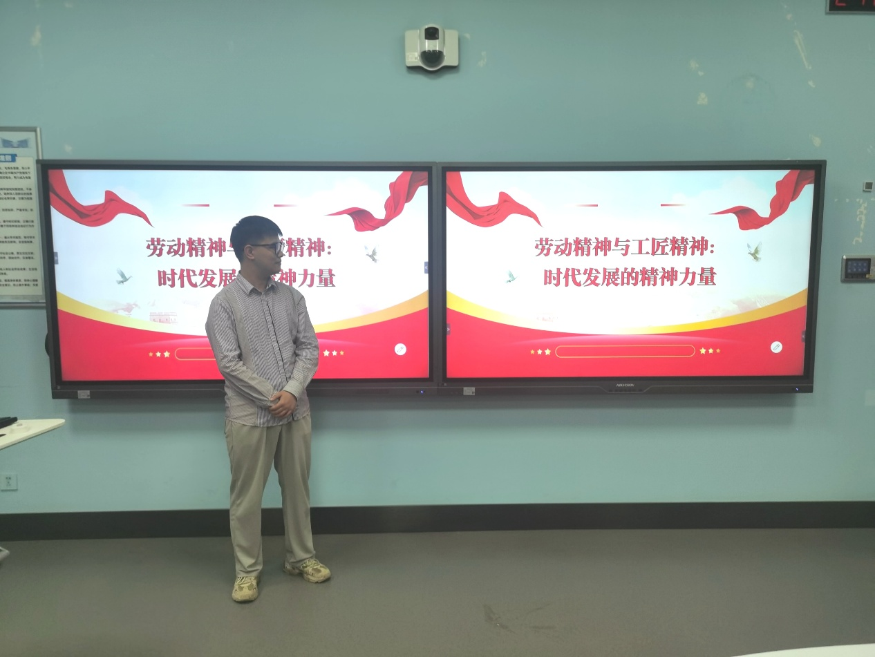 会议伊始,学生干部高淼阳从历史视角切入,带领成员回顾劳动精神的时代内涵。他提到,从万里长城到中国高铁,中华民族始终以坚韧不拔的劳动精神推动文明进步。新时代背景下,劳动精神更需与创新结合,激励青年在智慧劳动中实现自我价值,助力民族复兴。