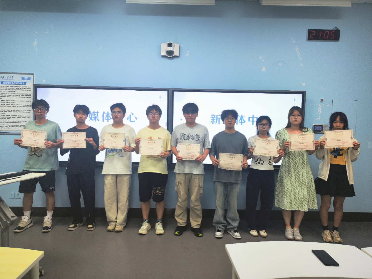 新媒体中心对在2025年校运会期间无私奉献、表现优异的志愿者进行表彰。学生干部高淼阳鼓励大家谈到:“志愿者是劳动精神的践行者,大家的热情服务保障了运动会的顺利开展,展现了新媒体中心成员的担当与凝聚力。”