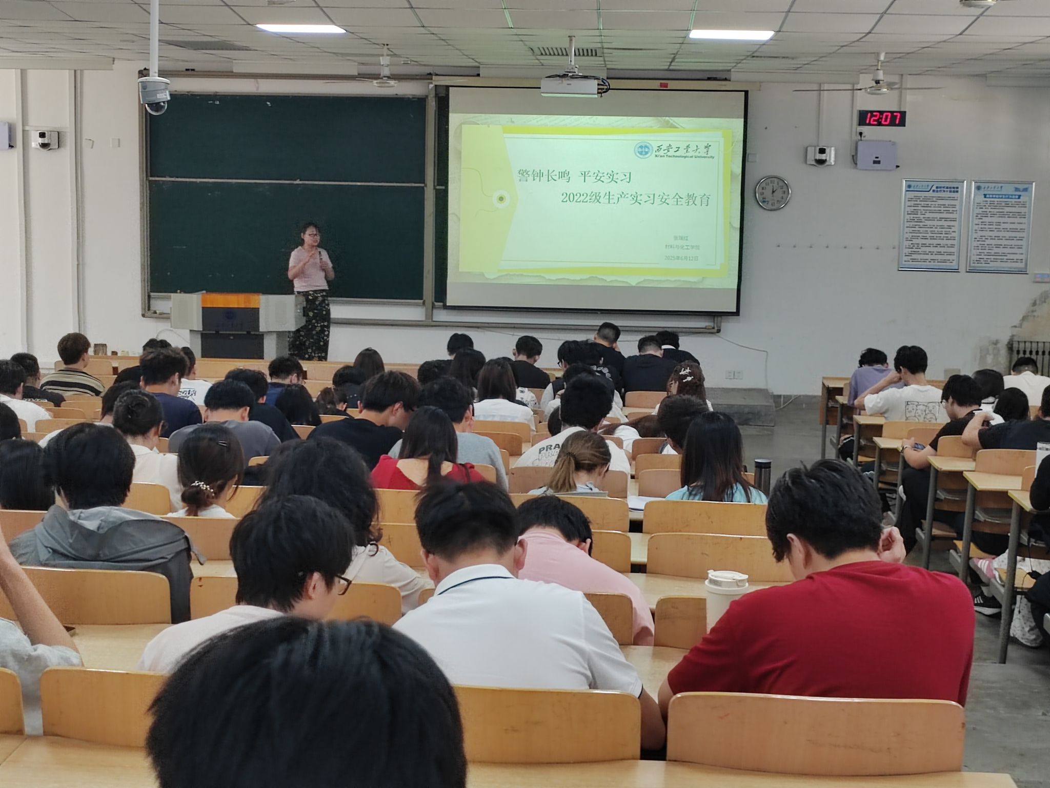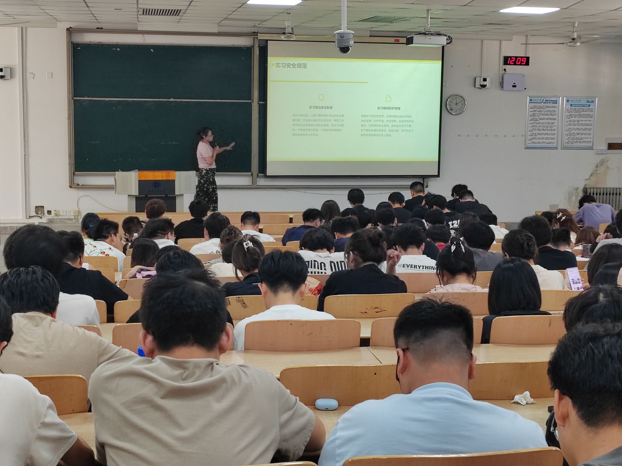 2022 级在教1-105召开生产实习安全会议。会议由辅导员张瑞红主持,2022级320余名学生参与。