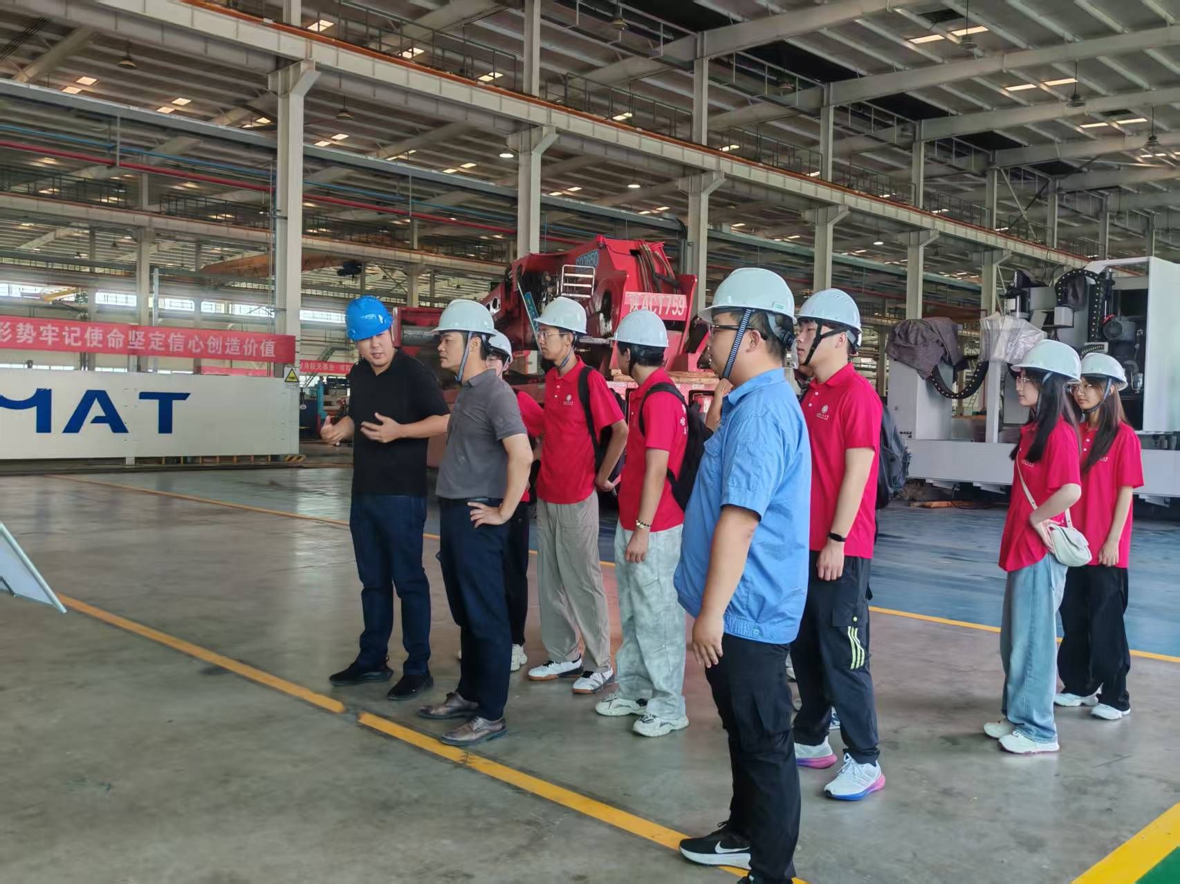 抵达公司后,师生们受到了公司领导及工作人员的热情接待。随后在员工张珅明的带领下,师生们深入生产车间进行实地参观。大家近距离观察了双金属复合管、聚合物增强复合管、焊缝无损检测、橡胶密封制品等生产装置和产线,了解产品从原材料到成品的完整生产流程。技术人员在现场详细讲解各生产环节的技术要点、质量控制标准以及先进的生产工艺,让师生们对材料的实际应用和工程化生产有了更直观、更深刻的认识。