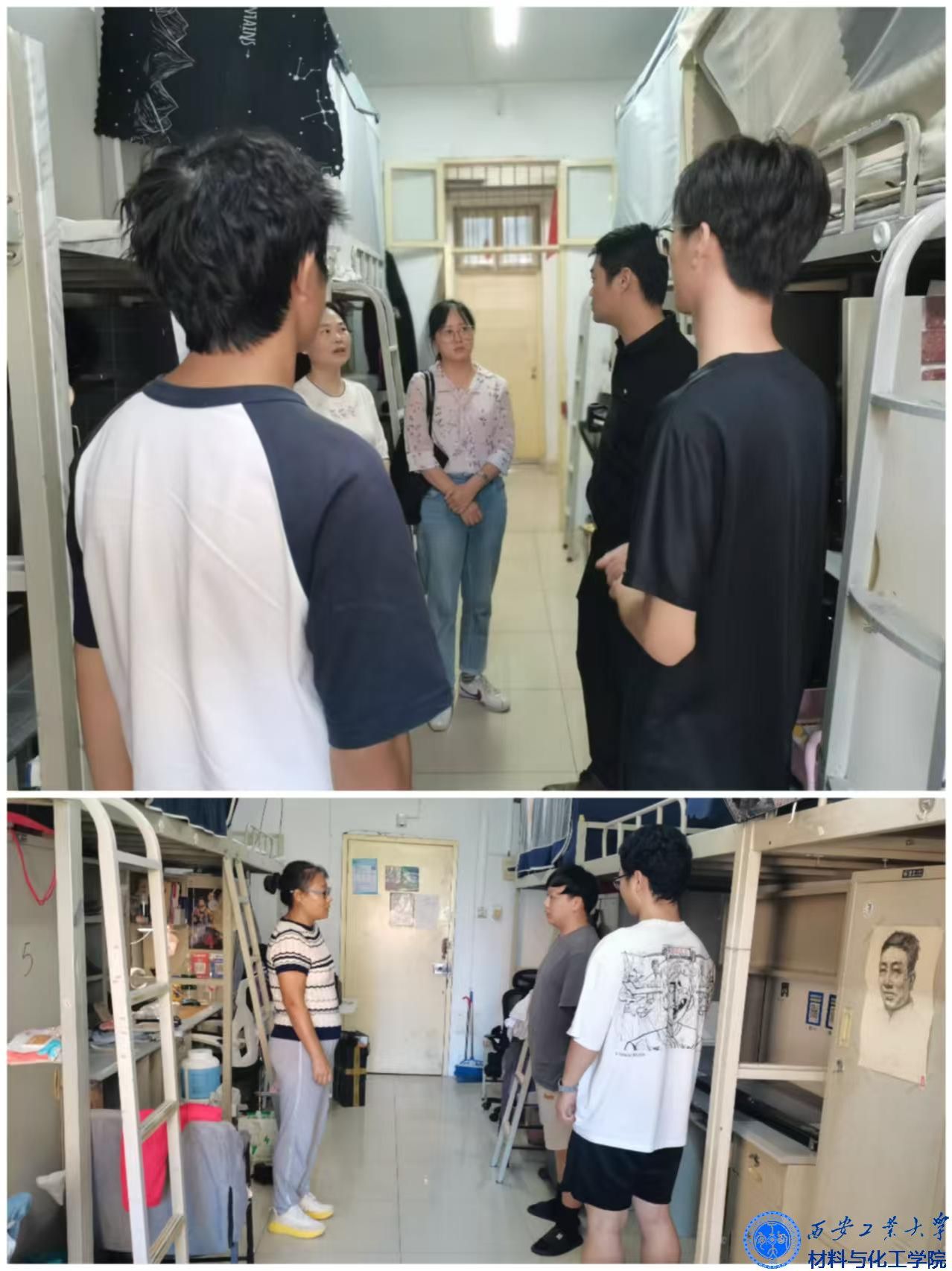 走进宿舍,老师与同学们亲切交流,从假期参与的科技竞赛、社会志愿服务锻炼历程,再到新学期的适应状态和学业规划等多方面询问。同时,重点对宿舍电路开关、电器使用、宿舍卫生等隐患点进行检查,尤其对堆积杂物、卫生死角等问题现场提醒整改,反复叮嘱学生“安全无小事”,时刻绷紧用电安全、出行安全、身体健康这根弦。