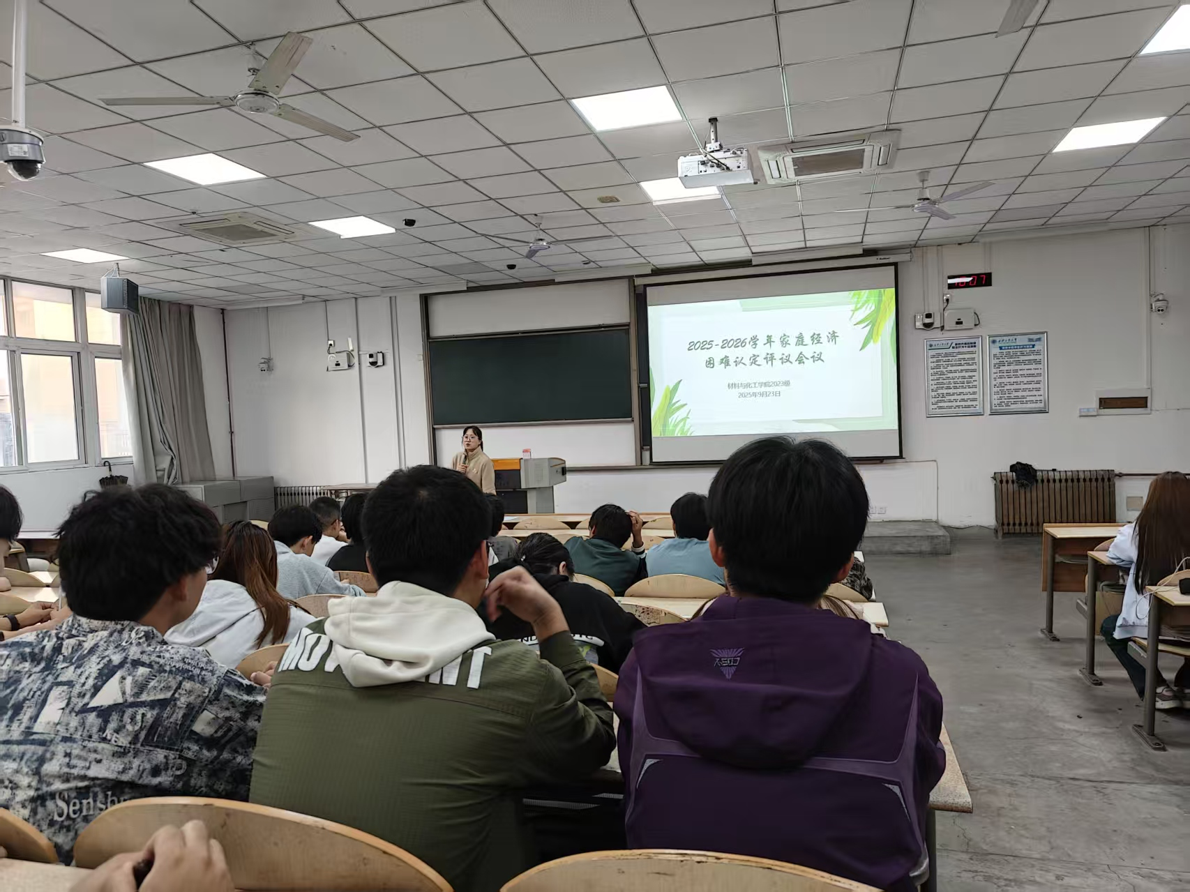 2023级在教1-101开展“2025-2026学年家庭经济困难认定工作会议”。会议由2023级辅导员乔娜主持,各班评议小组及部分学生代表参会。