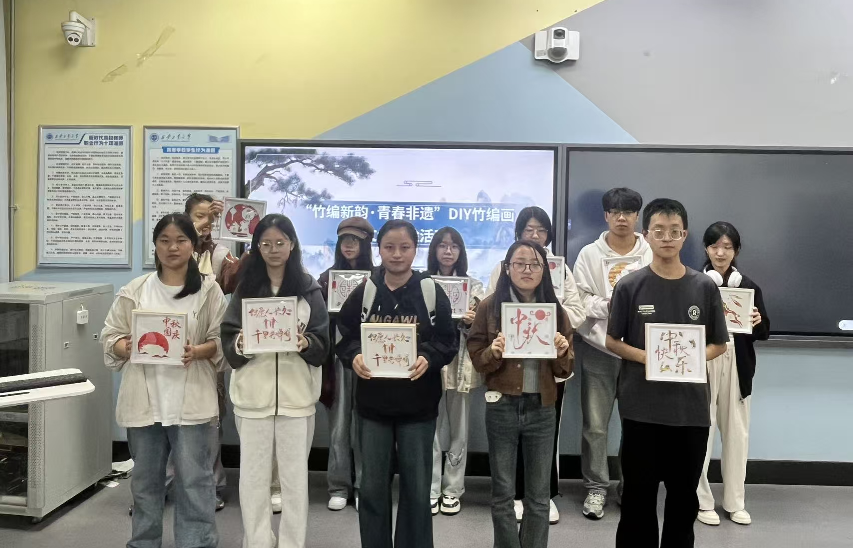 于9月28日在教3-101举办“竹编新韵·青春非遗”DIY竹编画文化体验活动。各民族20余名学生齐聚一堂,在指尖的穿梭编织中,触摸非遗技艺,传递双节祝福。