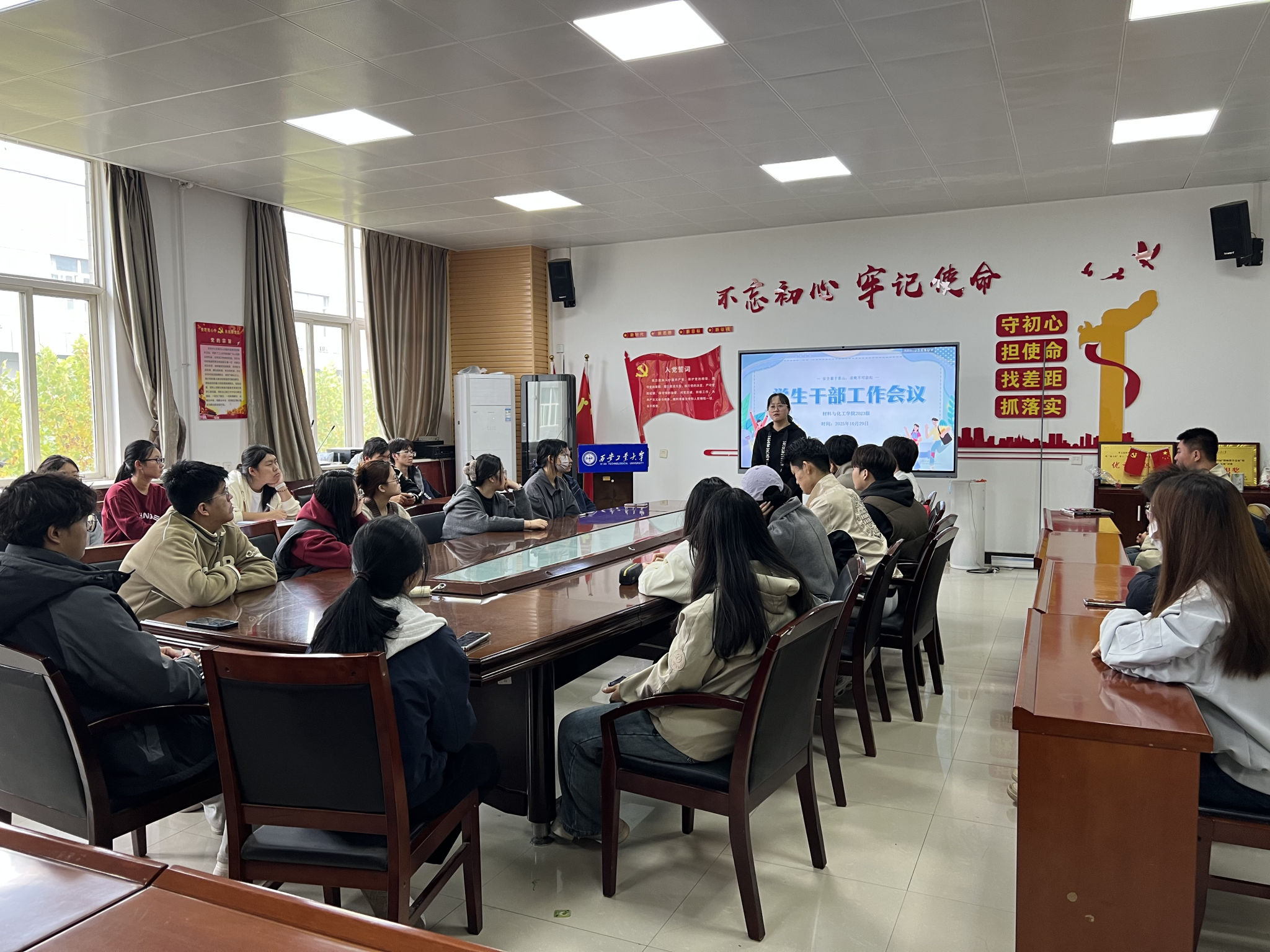 2023级在工3-410会议室召开学生干部工作会议。2023级辅导员乔娜及全体学生干部参会,会议聚焦“安全教育”核心,明确工作重点,部署后续工作。