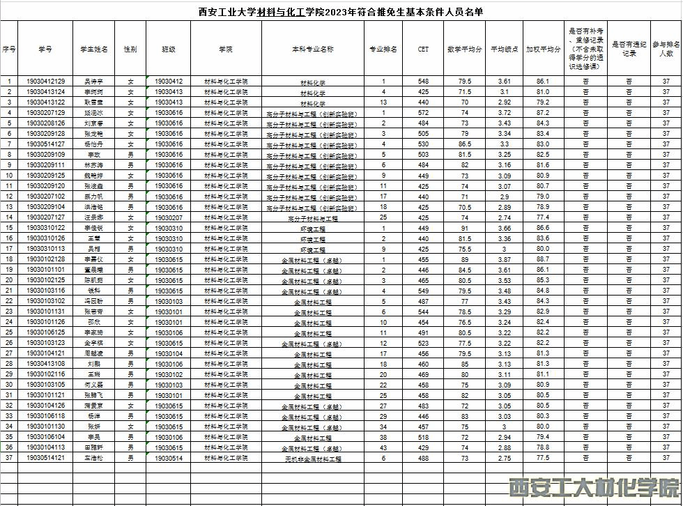 按照《西安工业大学推荐(接收)优秀应届本科毕业生免试攻读研究生实施办法(修订)》及本138开奖网 推免实施细则筛选,得出本138开奖网 符合推免生基本条件人员名单,现予以公示,如有问题,请于2022年9月11日18时前实名向138开奖网 联系人反馈,联系人:胡娜 联系电话:029-86173324