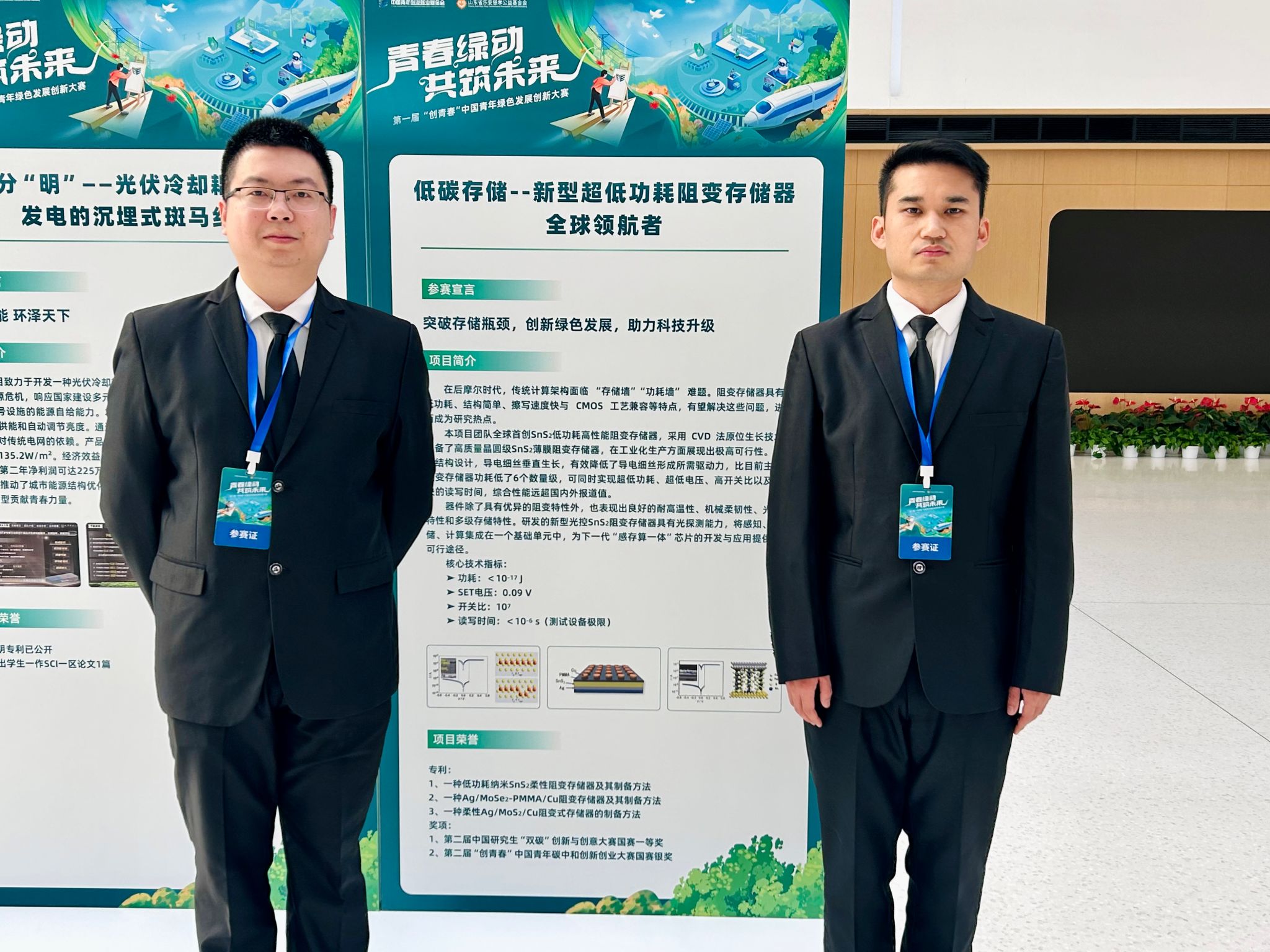 研究生陈卓、王星晨、陈瑞祥、高晶晶组成的交叉学科创新团队(指导教师:坚佳莹)完成的《低碳存储--新型超低功耗阻变存储器全球领航者》项目进入学术组全国六强,获得总决赛银奖(获奖率0.4%)。