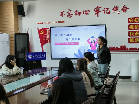 于3月25日在工3-410举办从“心”出发,“育”见美好心理健康教育主题班会。会议由辅导员张启妍主持,2024级研究生心理委员、学生骨干及宿舍长等50余人参加。
