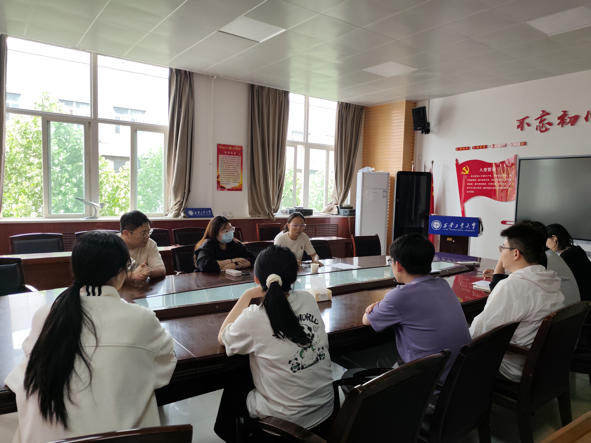 辅导员胡娜老师主持,研究生学生骨干参加会议。