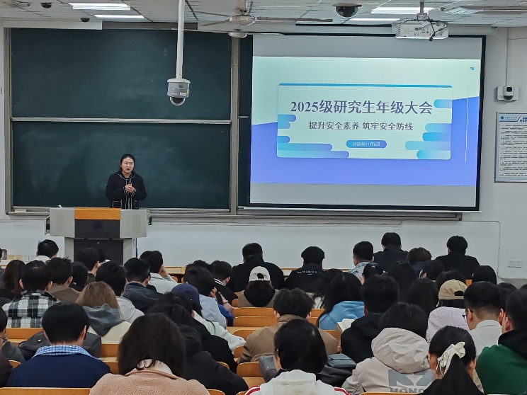 于11月6日在教1-201开展研究生安全教育年级大会。活动由研究生辅导员张启妍主持,全体研究生参加。