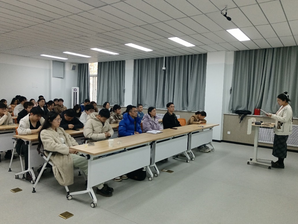 杨晶晶、陈杰两位老师到场指导,辅导员胡娜及四十余名学生共同参与,现场营造出互助共进的浓厚学术氛围。